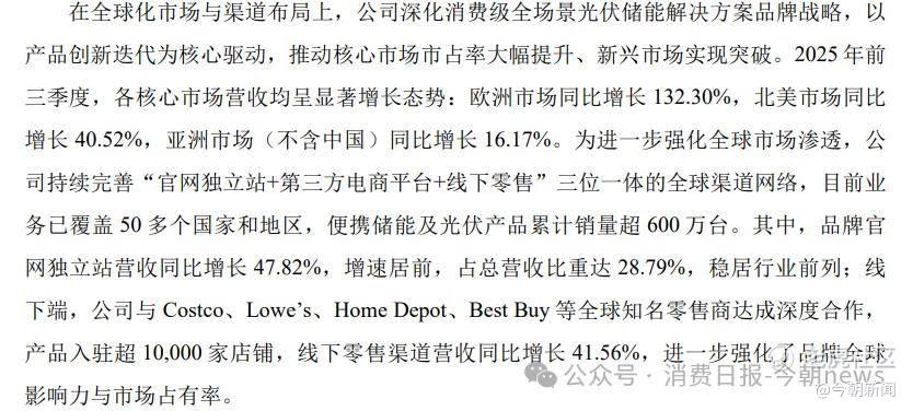 财报显示,2025年前三季度,华宝新能在全球50多个国家和地区布局业务,线下终端超10000家,M2C模式下独立站营收占比达28.79%,头部效应明显。