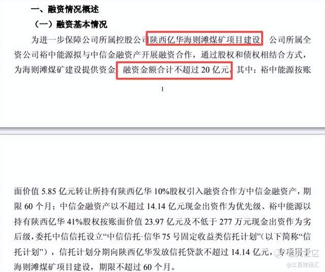 20亿融资,加码海则滩煤矿