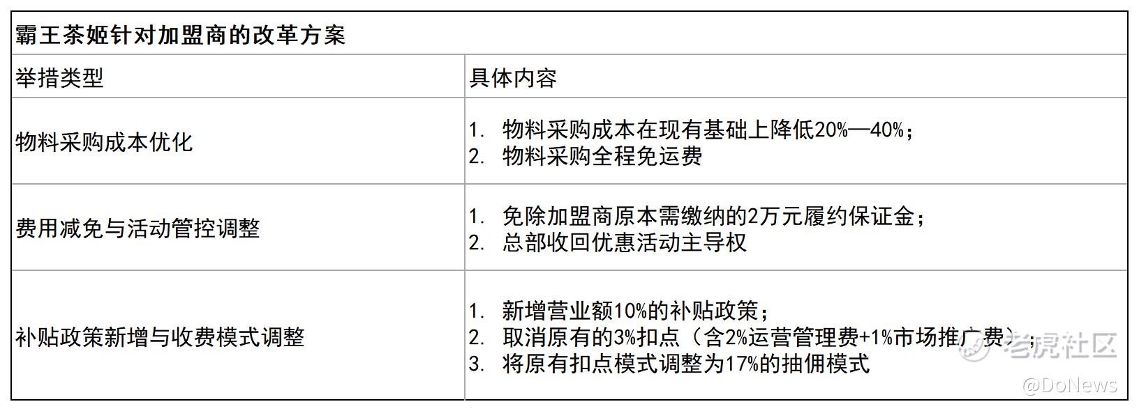 另一方面调整门店运营模式,为加盟商松绑,例如将原有的3%扣点调整为17%营业额抽成、免除部分物料采购成本,还在原有基础上将物料采购成本降低20%—40%等。