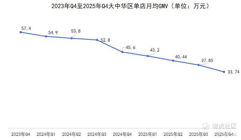 然而,这场造富神话的反转,比短剧更猝不及防:大中华区单店月均GMV从2023年Q4的57.4万元,连续8个季度下滑至2025年Q4的33.74万元,缩水幅度超四成;大单品神话破灭,新品迭代迟缓,门店无序加密持续分流客流。曾经趋之若鹜的加盟商,如今或黯然离场,或在亏损泥潭中苦苦支撑。