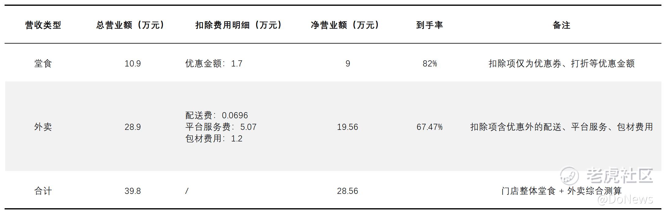 而外卖因同时产生包材费、平台服务费、商家配送费等多项开支,加盟商实际收入大幅折损。以28.9万元的外卖营业额为例,扣除696元配送费、5.07万元平台服务费、1.2万元包材费用后,净营业额仅19.56万元,到手率仅67.47%。也就是说,门店堂食占比越高,加盟商实际收益越可观,这正是霸王茶姬高层对外卖混战持谨慎态度的核心原因。