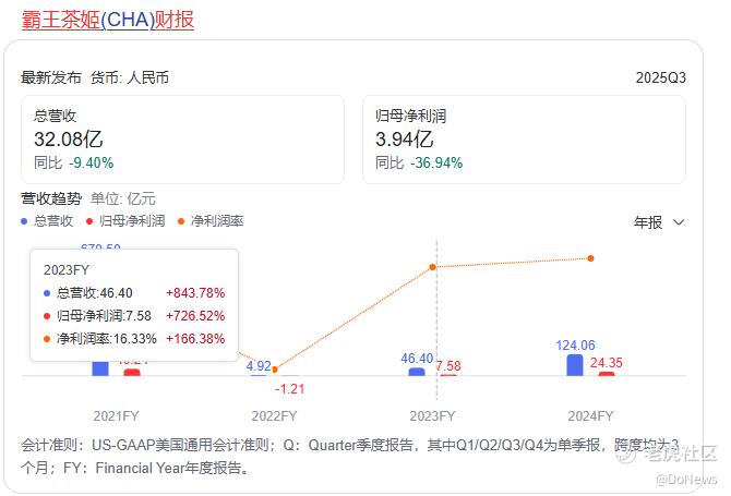 2025年全年霸王茶姬归母净利润仅11.35亿元,较上年同期腰斩过半;经调整后的净利润为19.1亿元,同比降幅超过20%。