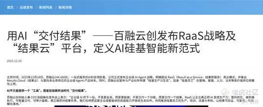 面对困局,百融云创讲希望寄托在AI上。2025年底,这家公司正式发布企业级AI智能体(Agent)战略,并提出“结果即服务”(RaaS)的全新商业模式。