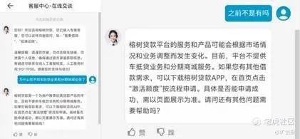 笔者咨询了榕树贷款的客服,客服的回复是“由于市场情况和业务调整,目前平台不提供车抵贷业务和分期商城业务”。