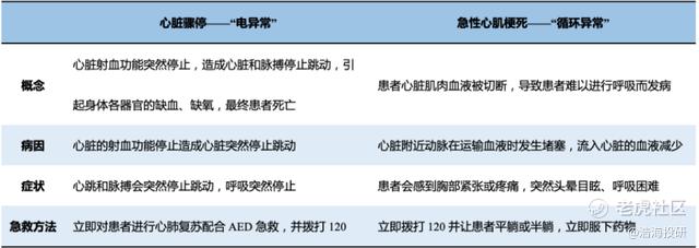 心脏骤停与急性心肌梗死具有本质区别 来源:国泰君安证券研究