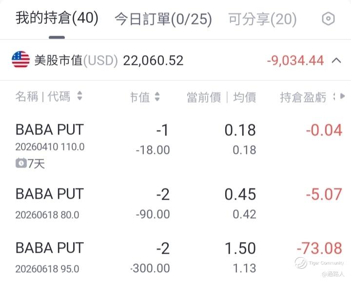 $阿里巴巴(BABA)$ 近来是一只我卖期权而没有持有正股既股。睇走势真系想似打落100之下。咁既情况之下。持有正股不是一个可取既投资方式。想佢?我觉得未系时候啰。暂时我部署了中线95同80各2张。短期只敢卖一张
