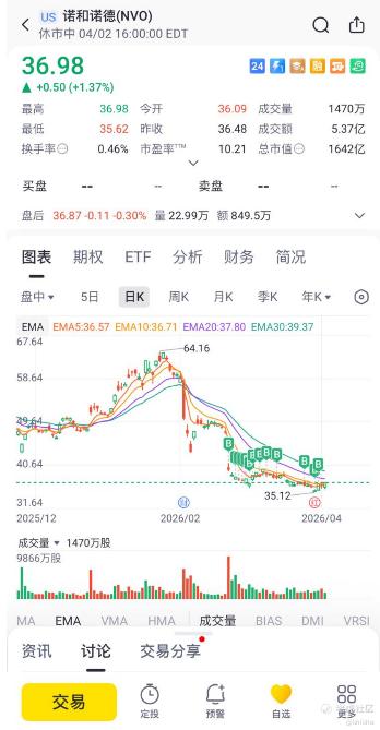 但到了2026年,诺和诺德一直跌跌不休,几乎腰斩了。