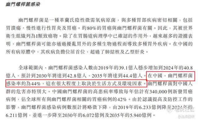 幽门螺杆菌感染情况 摘自《招股说明书》