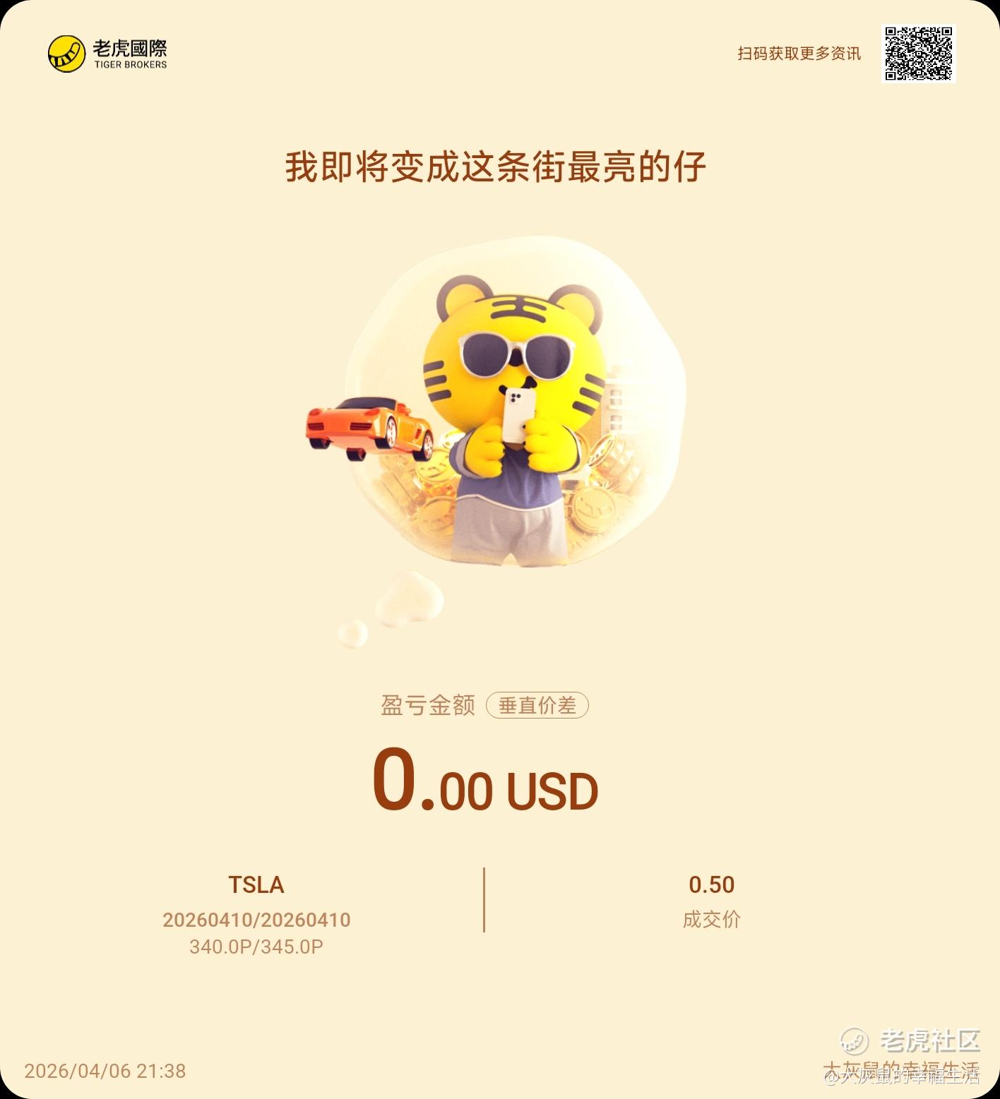 $特斯拉 垂直价差 260410 PUT 340.0/PUT 345.0$ 四月,第二周,垂直价差,开仓