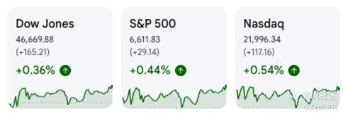 从收盘看,道指涨幅0.36%;标普500涨幅0.44%;纳指涨幅0.54%;罗素2000指数也涨0.4%。