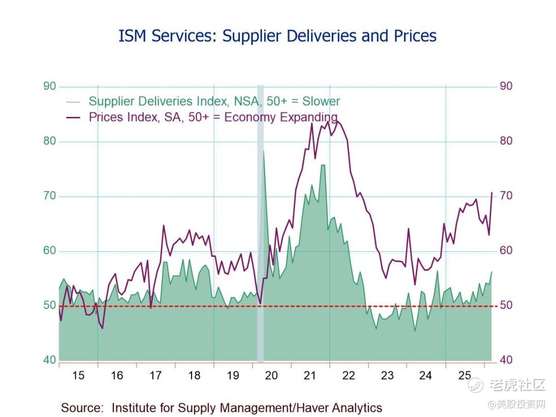 美国3月ISM非制造业指数从2月的56.1回落至54.0,显示服务业仍在扩张,但边际动能已经开始减弱。更值得警惕的是,支付价格分项创下逾13年来最大月度升幅,这背后指向的正是油价、运输和供应链成本的重新抬头。