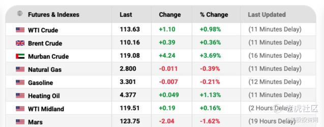 也正是在这段讲话期间,三大指数盘中均曾短线转跌,标普和纳指刷新日内低点,原油则同步加速走高。WTI原油收于112.41美元/桶,布伦特原油收于109.77美元/桶。