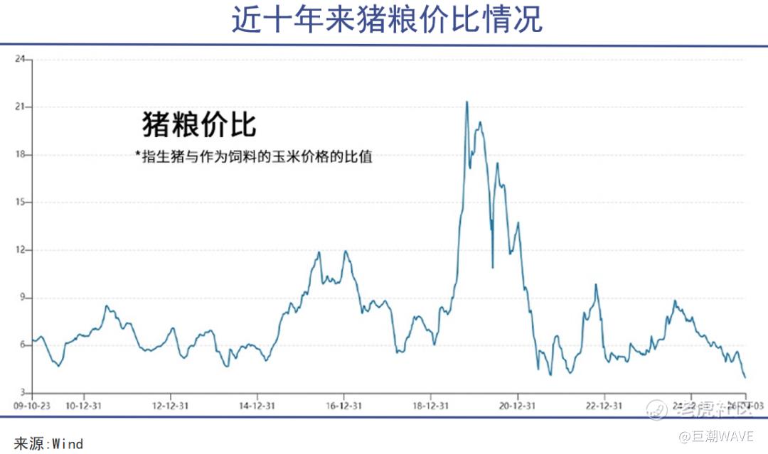 猪粮比(生猪出场价格与玉米批发价格的比值)是反映行业盈亏的“晴雨表”,在3月第3周开始已跌入4.4∶1以下,创2019年以来新低,远低于5∶1的一级预警线。