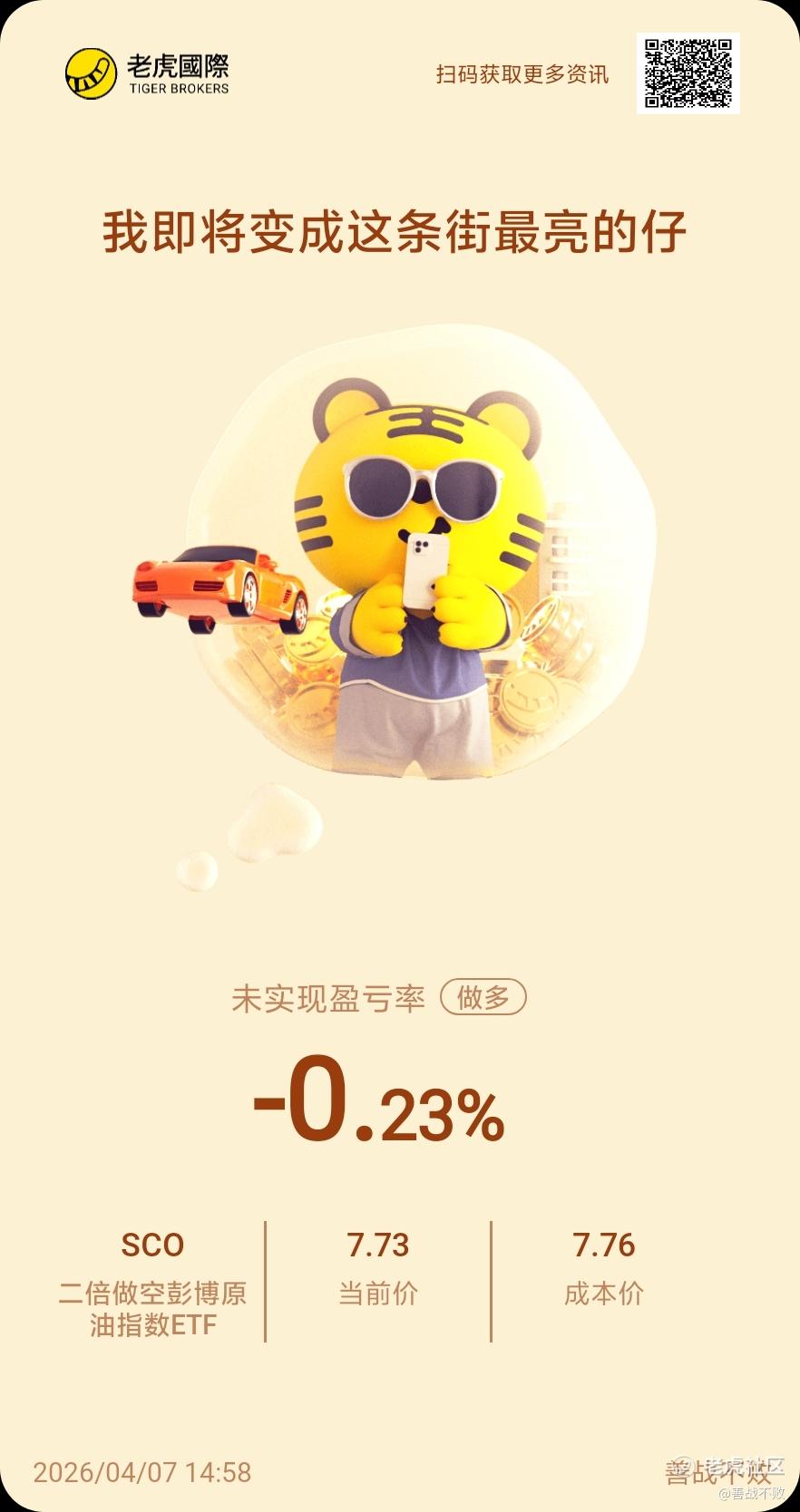 $二倍做空彭博原油指数ETF(SCO)$ 满仓满融梭哈。这位置空原油就对了。