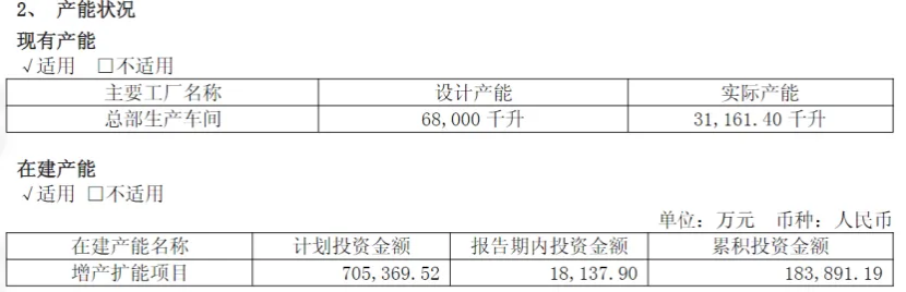 此外,在业绩大幅下滑之时,舍得酒业还在投入70亿元的大额资金推进扩产计划。但据2025年年报显示,公司产能利用率仅45.83%。