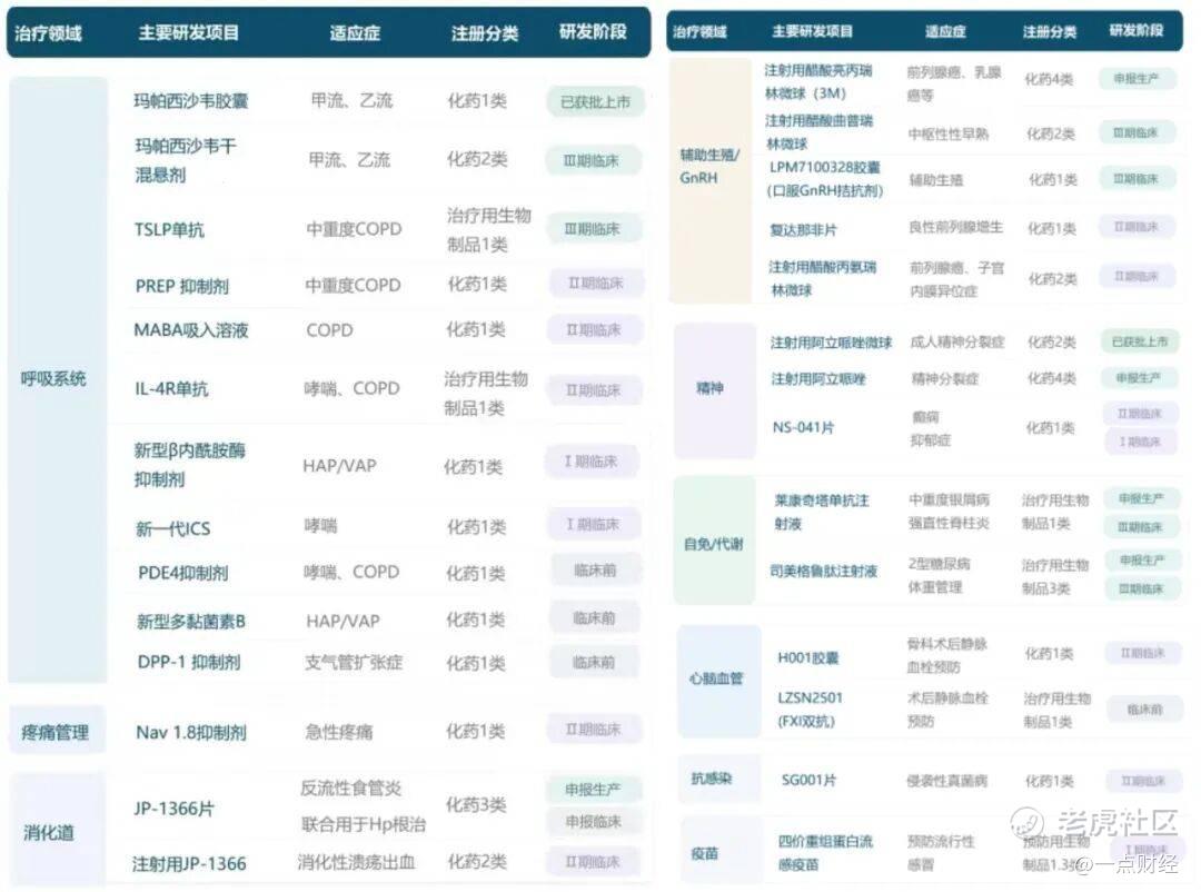消化道用药JP-1366片完成Ⅲ期临床并申报生产,注射液进度也至Ⅱ期;辅助生殖领域口服GnRH拮抗剂 LPM7100328胶囊处在Ⅲ期临床试验阶段。