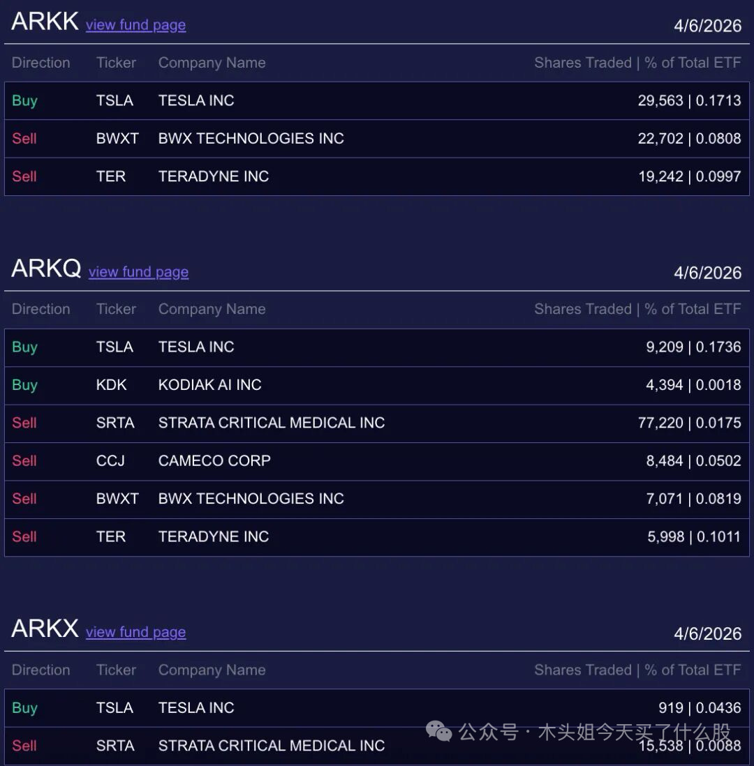 木头姐今天买入1400万美元特斯拉、3.3万美元KDK。这买入的特斯拉算是抄底吧,买入的股数还不低。