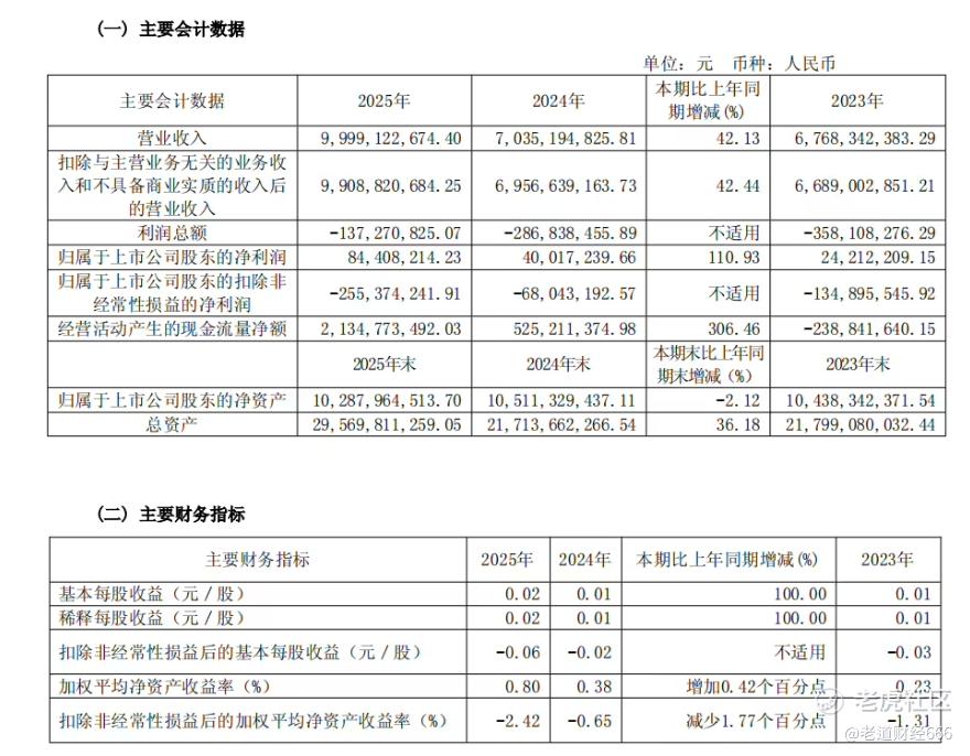 $千里科技(601777)$ 千里科技发布了2025年的年报。去年全年营收99.99亿元,同比增长42.13%,主要靠汽车和摩托车业务销量增长带动;归母净利润有0.84亿元,翻了一倍多。另外,研发费用花掉了8.22亿元,直接翻倍,能看出来公司在转型上投入很大。