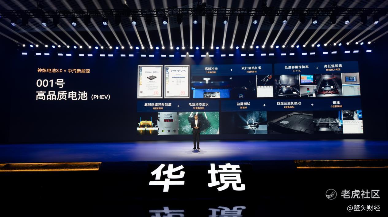 三电安全层面,华境S神炼电池3.0搭载宁德时代超级增·混电芯,打造独有的系统级五“零”安全,达成766亿公里零自燃的实战记录。该电池实现极限设计、极限制造、极限验证三大进化,PPB航空级制造标准,实现十亿分之一的严苛管控,为用户出行保驾护航。在极限验证中,神炼电池3.0不仅以裸电芯硬抗1500J(10倍新国标能量)底部撞击,仍能做到不起火、不爆炸,并通过贴近用户使用场景、超越新国标的四大串行测试,获中汽新能源001号(PHEV)高品质电池验证证书。新国标的四大串行测试,获中汽新能源001号(PHEV)高品质电池验证证书。