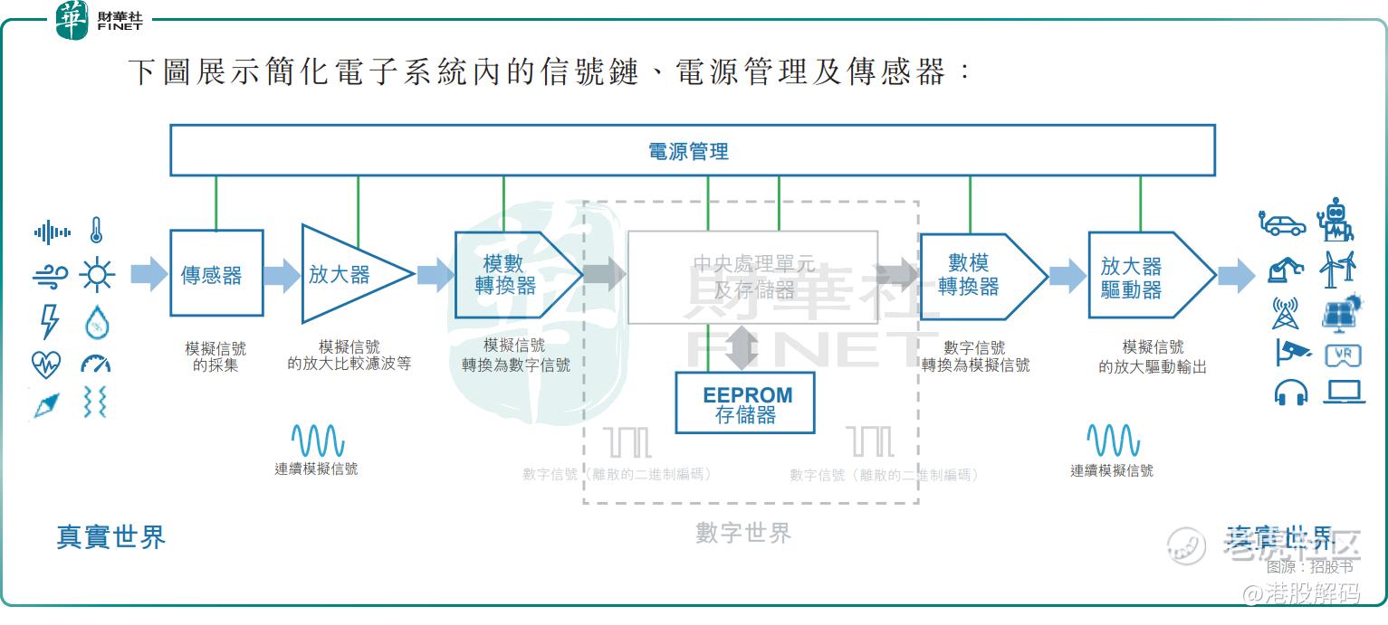 截至2026年3月22日,公司拥有超过6800种模拟集成电路与传感器产品。其中,(i)19个品类为信号链产品,覆盖了从信号采集、调理到转换和传输的整个信号路径,包括放大器、比较器、模拟开关、数据转换器及EEPROM等,(ii)17个品类为电源管理产品,包括DC/DC转换器、低压差线性稳压器(LDO)、AMOLED电源芯片以及锂电池充电与保护芯片等,及(iii)传感器涵盖2个品类,包括温度传感器和磁传感器。