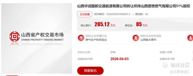 4月2日,山西省产权交易市场显示,山西华润国新交通能源有限公司(以下简称“山西华润国新”)拟转让所持山西晋燃燃气有限公司(以下简称“晋燃燃气”)51%股权,转让底价为285.12万元。