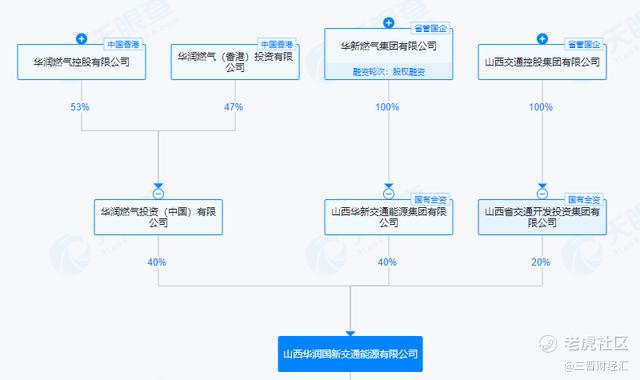 股权结构上,该公司由三大股东共同持股,其中山西华新交通能源集团有限公司持股40%,华润燃气投资(中国)有限公司持股40%,山西省交通开发投资集团持股20%,实控人为山西省国资委。