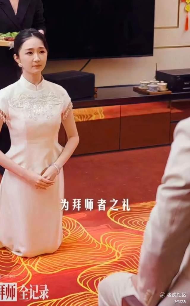 在收徒仪式上,只见美女徒弟徐婕在辛巴面前跪下并宣读拜师帖,行传统三拜大礼后向辛巴恭敬敬茶,流程非常庄重正式。