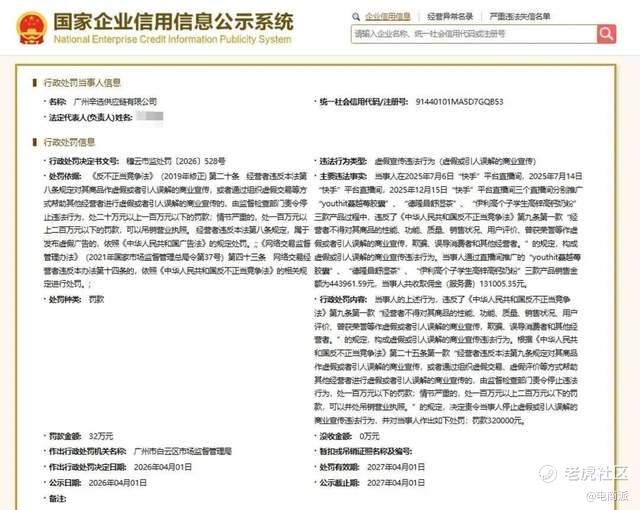 不过,最近辛巴还卷入了带货优思益产品等风波。近日,据国家企业信用信息公示系统显示,辛选旗下广州供应链公司因虚假宣传被广州白云区市场监管局罚款32万元。