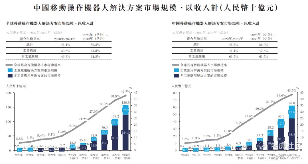 根据弗若斯特沙利文(Frost & Sullivan)的报告,全球移动操作机器人解决方案的市场规模由2020年的人民币22亿元增加至2024年的人民币92亿元,2020年至2024年的复合年增长率为43.4%,预计到2030年将进一步增长至人民币1,569亿元,2025年至2030年的复合年增长率为59.5%。