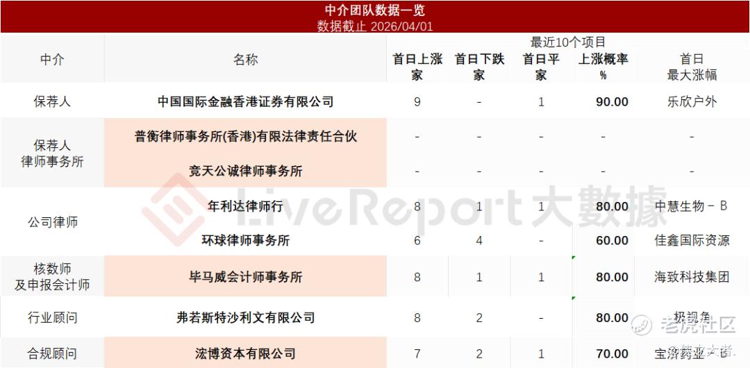 据**大数据统计,优艾智合中介团队共计8家,其中保荐人1家,近10家保荐项目数据整体表现优秀;公司律师共计2家,综合项目数据整体良好。整体而言中介团队历史数据表现不错。