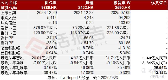 2026年3月31日,优艾智合第2次向港交所递交招股书,拟以18C章在香港主板上市,独家保荐人为中金公司。公司是中国移动操作机器人龙头企业,2025年度收入约3.40亿元,同比增长33.27%,净亏损约3.84亿元,同比扩大91.96%。