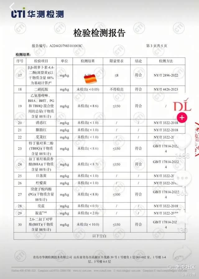 商品送检的同时,胖东来也对相关厂家的饲料进行了抽检。结果显示,均含有斑蝥黄(角黄素),但符合农业农村部8mg/kg的限量要求。