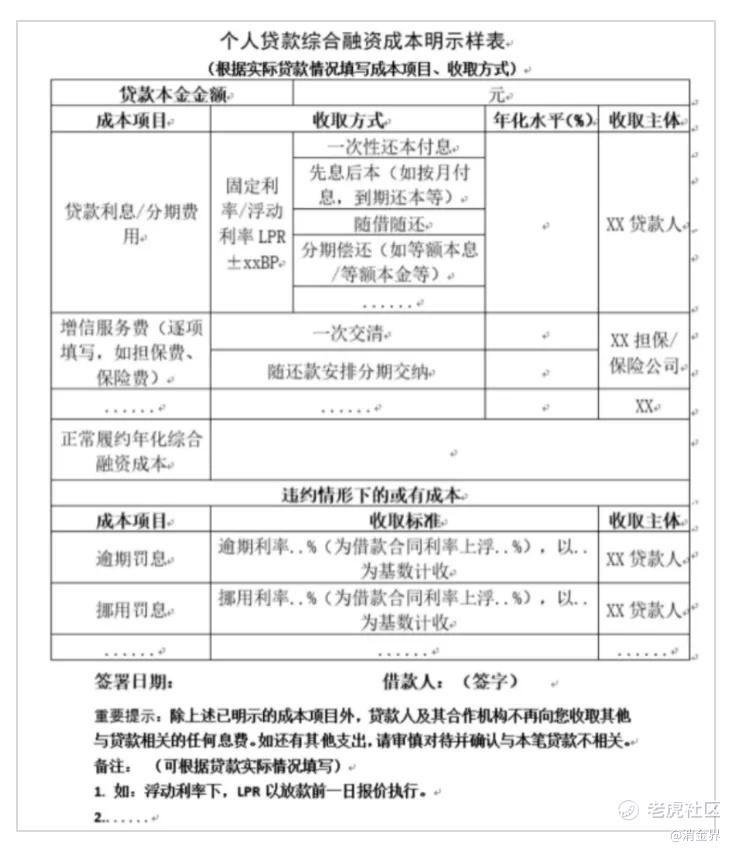 其中规定,应当向借款人展示“综合融资成本明示表”。