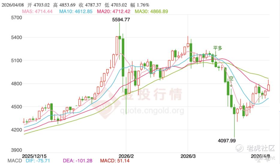 2026年年初,金价冲高至5596 美元/盎司,3月20日一度下探至4098美元/盎司,4月8日又重回4800美元上方。相比2024年-2025年的稳定上涨趋势,2026年的金价更加难以预测。