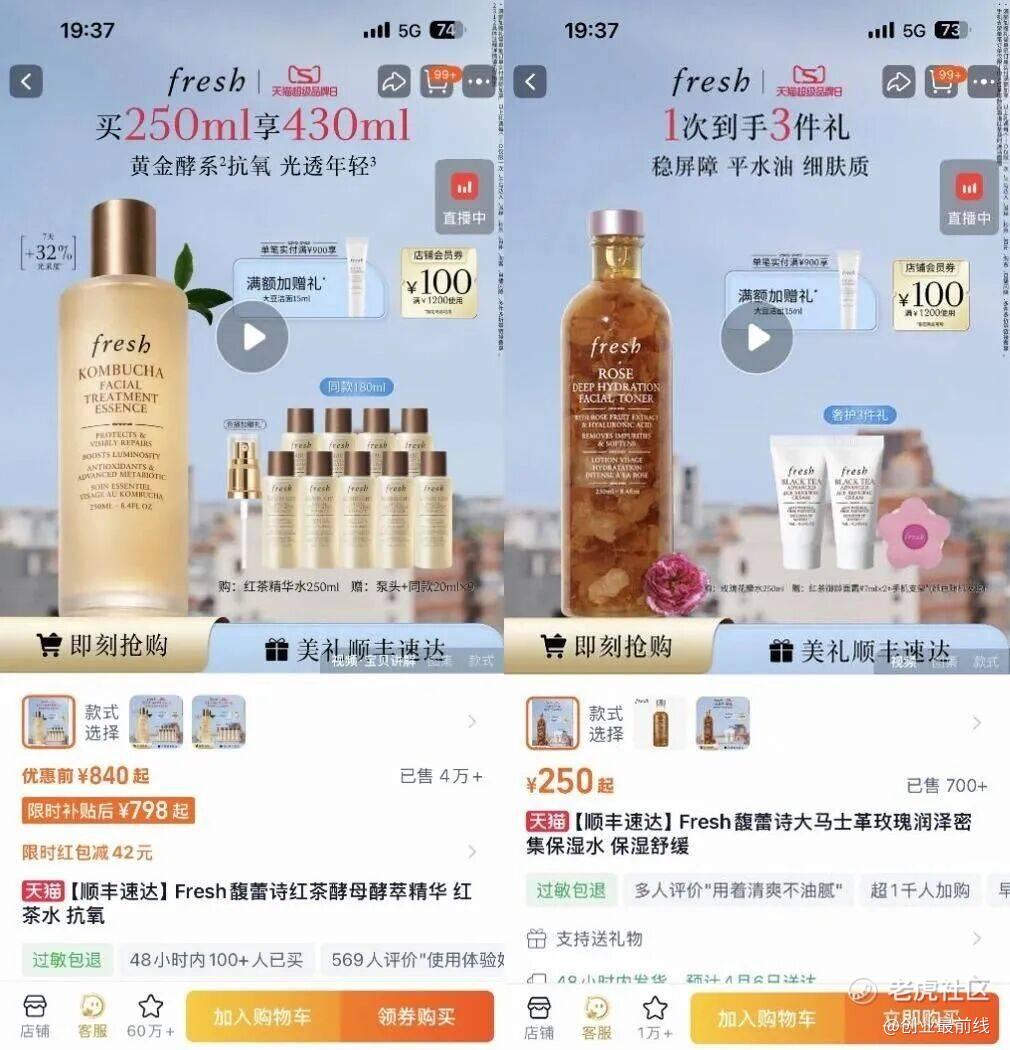 在消费端,销量数据显示,馥蕾诗部分产品颇受欢迎。今年3·8大促期间,李佳琦直播间护肤专场刚开始不久,馥蕾诗红茶酵母酵萃精华水就被抢空,补货后很快再次售罄,李佳琦在直播间感叹:“好夸张!今年3·8期间精华水第一名。”