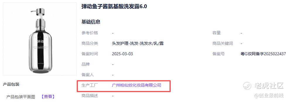 产品层面,弹动宣称添加三大核心成分:西班牙鱼子酱(紧致头皮、充盈蓬松)、保加利亚玫瑰花水(鲜活补水、舒缓头皮)、英国天然氨基酸(温和清洁)。美丽修行信息显示,该产品委托广州柏仙奴化妆品有限公司生产。