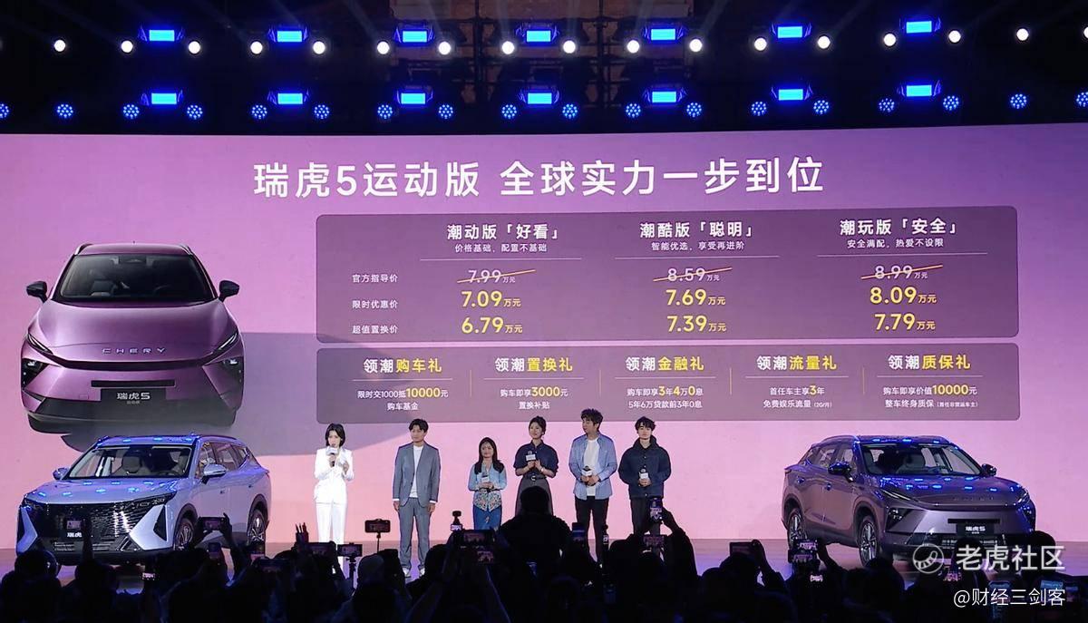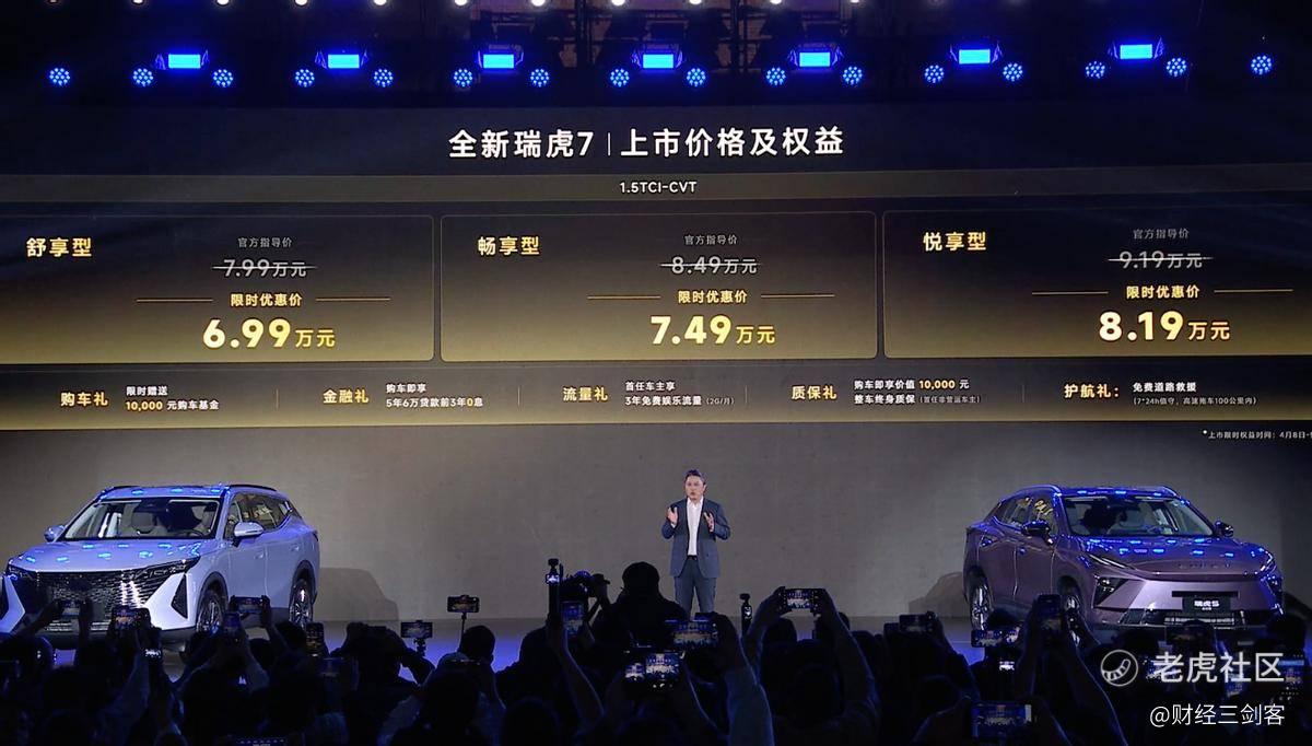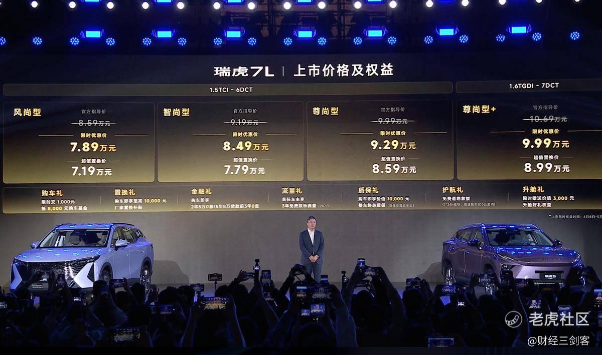 $奇瑞汽车(09973)$ 【文/深度评车&财经三剑客】在2026年4月8日这个充满活力的春日里,奇瑞汽车以一场盛大的发布会,向世界宣告了其瑞虎家族的全新篇章——“问鼎双百万 双虎耀全球”。在这一主题下,瑞虎7L、全新瑞虎7以及瑞虎5运动版三款全新车型震撼登场,不仅覆盖了7-10万级的主流SUV市场,更以各自独特的定位和卓越的性能,精准契合了不同年轻用户与家庭用户的多元化出行需求。