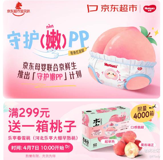 而此次随单赠送的6粒装河北春雪蜜桃礼盒,则是由京东自有品牌京鲜生从核心产区甄选的新鲜脆桃,该品种属于超早熟品种,是中国最早成熟的毛桃,目前正值春季集中上市期。现在打开京东APP搜索“守护嫩PP”即可进入活动会场下单,一份订单,既为宝宝挑选了放心纸尿裤产品,还能尝鲜当季时令鲜果。