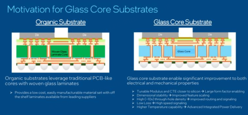 广泛应用于HPC与AI伺服器。英特尔早在2023年宣布玻璃基板计划,并投资巨额于美国亚利桑那州建立研发生产线,目标2030年前实现大规模量产,用于资料中心AI晶片。