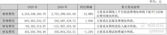 数据显示,2025年,森马的销售费用同比增长12.88%至42.35亿元,销售费用增速远超3.17%的营收增速,直接挤压了森马的利润空间。公司表示,主要系本期线上平台投流费增加和线下新开门店相应费用增加所致。