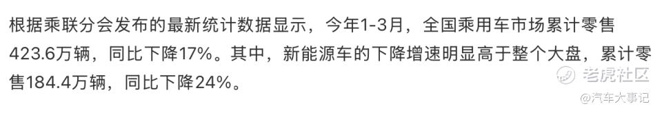 2026年,国内狭义乘用车累计零售 423.6 万辆, 同比下降17%,其中,新能源车的下降增速明显高于整个大盘,累计零售184.4万辆,同比下降24%。从整体数据来看,销量下滑不是某一家的问题,而是全汽车行业都在面临的困境。