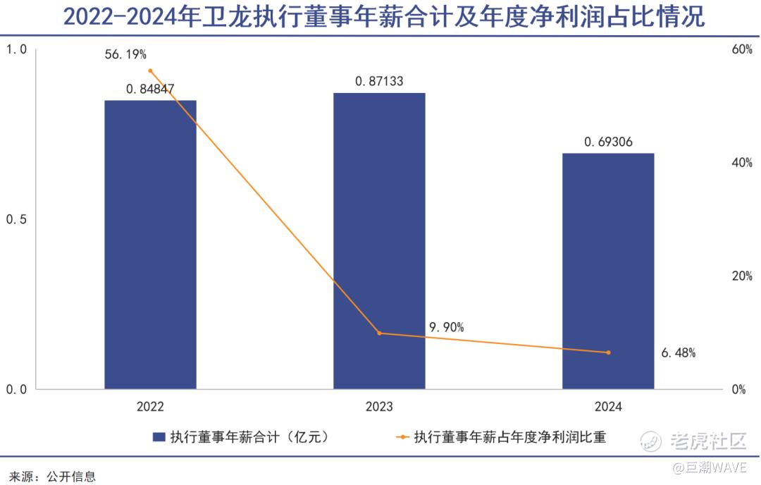 2022年—2024年,卫龙美味每年都支出的董事薪酬达8484.7万元、8713.3万元、6930.6万元。而2022年,其净利润也仅为1.51亿元。