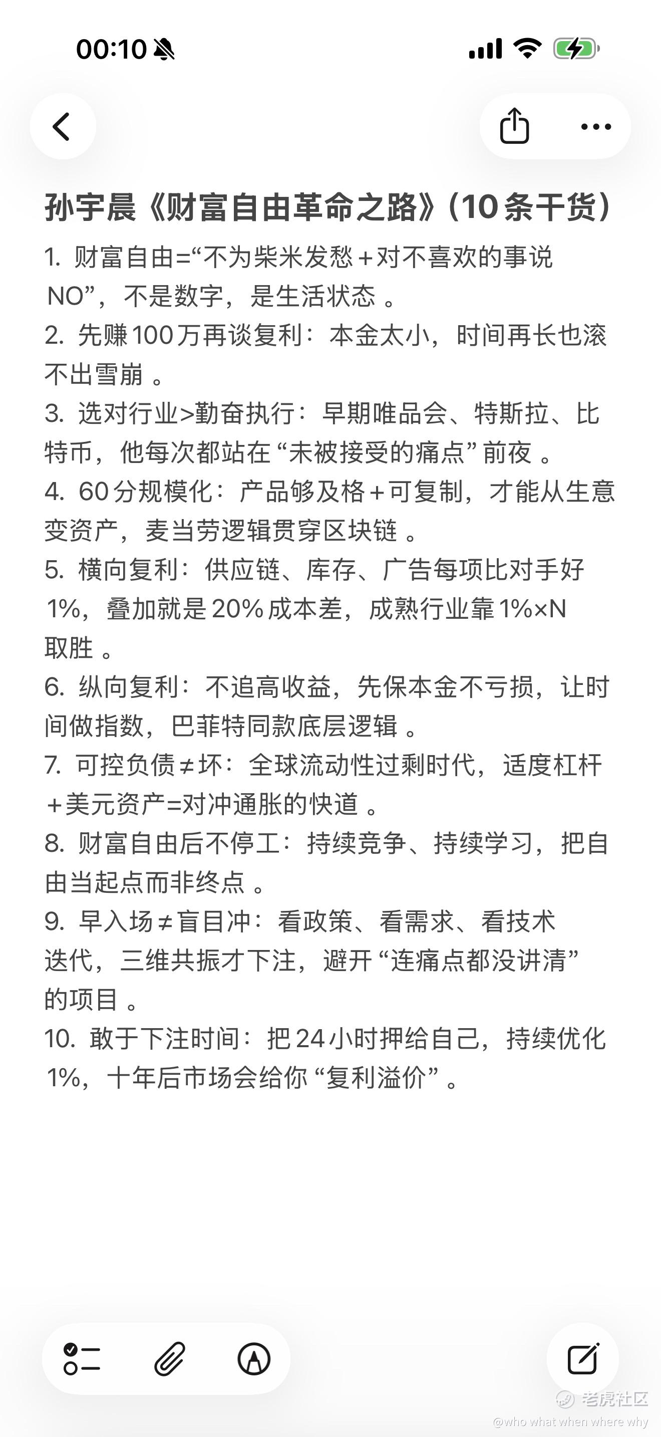 {"i18n":{"language":"zh_CN"},"data":{"magic":2,"id":551798504110288,"tweetId":"551798504110288","gmtCreate":1775751072040,"gmtModify":1775751142285,"author":{"id":3494656130425887,"idStr":"3494656130425887","authorId":3494656130425887,"authorIdStr":"3494656130425887","name":"who what when where why","avatar":"https://static.tigerbbs.com/fe9d32323d85e1df4b91ab9fc28ca28a","vip":2,"userType":2,"introduction":"全网同名:who what when where why(Openclaw策略模型)","boolIsFan":false,"boolIsHead":false,"crmLevel":1,"crmLevelSwitch":0,"individualDisplayBadges":[],"wearingBadges":[],"fanSize":4,"starInvestorFlag":false},"themes":[],"images":[{"img":"https://static.tigerbbs.com/53aaf5647c940da9448b55a580b08e41","width":"1320","height":"2868"}],"coverImages":[{"img":"https://static.tigerbbs.com/53aaf5647c940da9448b55a580b08e41","width":"1320","height":"2868"}],"title":"","html":"<html><head></head><body><p>孙宇晨《财富自由革命之路》(10条干货)</p><img src=\"https://static.tigerbbs.com/53aaf5647c940da9448b55a580b08e41\" tg-width=\"1320\" tg-height=\"2868\"></body></html>","htmlText":"<html><head></head><body><p>孙宇晨《财富自由革命之路》(10条干货)</p><img src=\"https://static.tigerbbs.com/53aaf5647c940da9448b55a580b08e41\" tg-width=\"1320\" tg-height=\"2868\"></body></html>","text":"孙宇晨《财富自由革命之路》(10条干货)","highlighted":1,"essential":1,"paper":1,"likeSize":3,"commentSize":0,"repostSize":0,"favoriteSize":0,"link":"https://laohu8.com/post/551798504110288","repostId":0,"isVote":1,"tweetType":1,"viewCount":150,"commentLimit":10,"likeStatus":false,"favoriteStatus":false,"reportStatus":false,"symbols":[],"verified":2,"subType":0,"readableState":1,"langContent":"CN","currentLanguage":"CN","warmUpFlag":false,"orderFlag":false,"shareable":true,"causeOfNotShareable":"","featuresForAnalytics":[],"commentAndTweetFlag":false,"andRepostAutoSelectedFlag":false,"upFlag":false,"length":34,"optionInvolvedFlag":false,"xxTargetLangEnum":"ZH_CN"},"commentList":[],"hasMoreComment":false,"orderType":2}