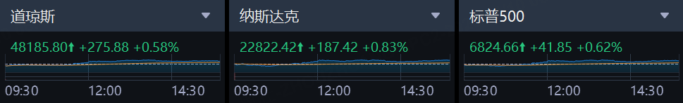 4月10日,美股三大指数集体收涨:道琼斯指数涨0.58%,报48,185.80点;标普500指数涨0.62%,报6,824.66点;纳斯达克综合指数涨0.83%,报22,822.42点。指标股普遍走高,科技权重仍是主要推力,市场暂时摆脱前一交易日的波动压力。