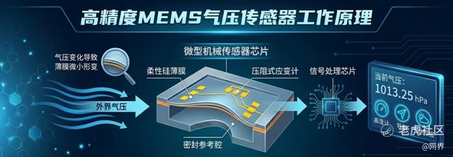 计算气压变化的这一黑科技的核心,藏在手表里比指甲盖还小巧的MEMS高精度气压传感器中。这个精细的微电机系统,能敏锐捕捉到上下楼时那微乎其微的大气压强差。