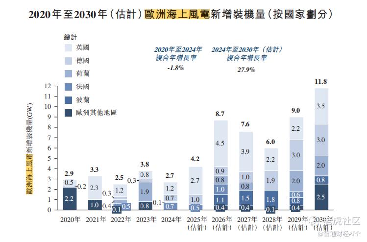 更重要的是,海上风电在欧洲能源结构中的战略地位持续提升。2024年欧洲海上风电拍卖量创历史新高,累计核准项目已达23.2 GW。弗若斯特沙利文预计2024年至2030年欧洲海上风电新增装机量的复合年增长率将高达27.9%,到2030年单年新增装机有望达到11.8 GW。这意味着大金重工面对的不是一个短期的订单高峰,而是一个持续5-10年的结构性增长通道。