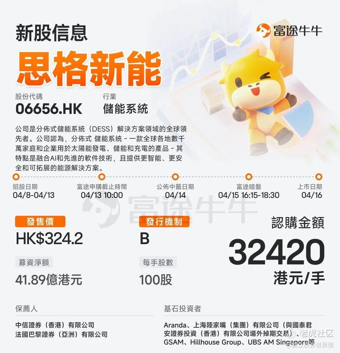 思格新能发布公告,于4月8日-4月13日招股,公司拟全球发售约1357.39万股股份,预期将于4月16日上市。 $思格新能(06656)$