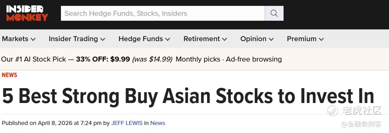 国际财经媒体Insider Monkey近期盘点了当前最被看好的5只亚洲“强力买入”股票,一起来看下是哪5只。