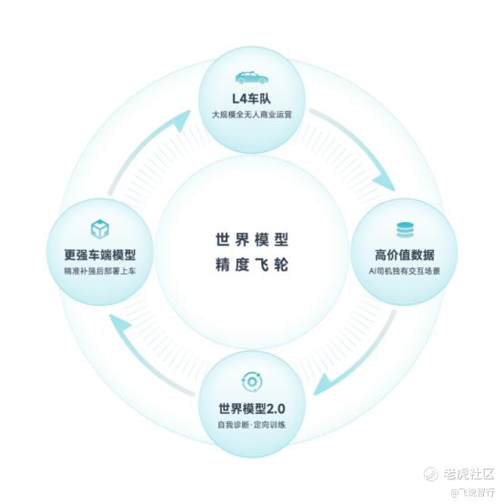 小马智行强调,世界模型精度的持续提升依赖于一个自我强化的精度飞轮:大规模L4无人车队商业运营 → 产生真实世界高价值数据 → 世界模型提升精度 → 车端模型持续增强 → 支撑更大规模L4部署 → 产生更多高精度数据