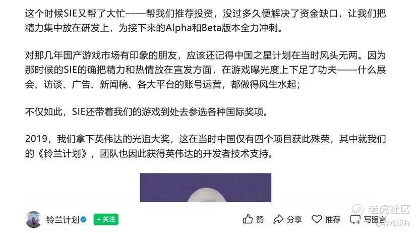 以及第二期的《失落之魂》与《铃兰计划》两款也与索尼签订了发行协议。前者因“战线”拉太长以及舆论危机销量褒姒,后者则曾发长文表示项目近乎“停滞”。